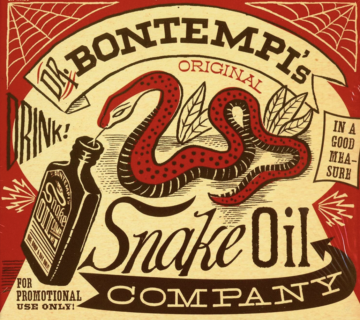 The very term snake oil comes from the many years in the 19th century when hucksters sold little bottles of mineral oil fobbed off as, well, snake oil. Historians surmise that the health-saving promises made by the salesmen came from the real snake oil brought to America by Chinese working on the western railways. Chinese have been using the oil from water snakes for centuries to help with arthritis. I don’t know if it works or not but real snake oil does at least have lots of Omega-3 fatty acids, which might help with cardiovascular and brain health. In 1916 when the US government finally did a chemical analysis on Clark Stanley’s Snake Oil (one of the biggest salesmen nationwide), they found it was composed of mineral oil, tallow, chili peppers, turpentine, and camphor.