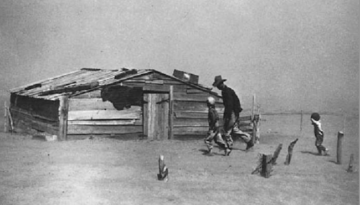 As if to add misery to an already collapsing economy, the men and women living in the central and southern Great Plains during the 1930s suffered from nearly ten years of drought in what was called The Dust Bowl. From Texas to southern Colorado and from New Mexico to Oklahoma, the rain stopped and the ground dried up. In some years, the region received as little as 50% of normal rainfall. Crops failed, farms were foreclosed, and a great train of jalopies filled with all the family possessions set out for the promised paradise of California.