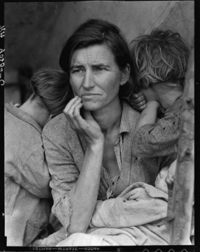 The photographer Dorothea Lange captured so much of that era with her Graflex camera, rambling about the country under the Farm Security Administration program. Many of her photos show a people beaten down by the dust, hunger, and months and years without work. But there is something entirely noble in her photos. Perhaps her most famous image, Migrant Mother, shows a young woman in tattered clothing holding an infant. In the same photo, two young children, with their faces hidden, press against the woman’s shoulders as if seeking shelter. The woman appears to be looking into the distance and lost in worry or thought. I guess you can read what you want in the photo, but what I see is a mixture of anxiety, love, and courage. Lange and other photographers in the FSA program captured Americans living on the thinnest of margins but with some ethereal bit of hope—a trust in providence.