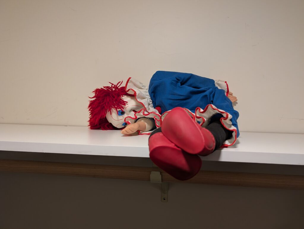 With this new arrangement, Floyd is born again. His role becomes “mom’s potential boyfriend in old age”, much to the dismay of my dad. They joke about Floyd’s miniature shoes. His bendable legs become an object of delight. They sit him in weird poses first thing in the morning to scare each other.