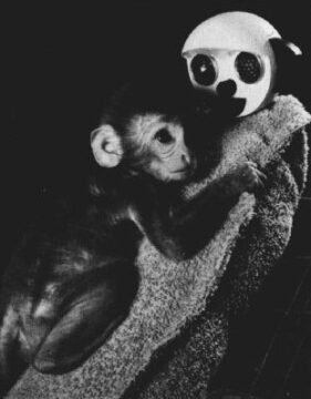 In a famous experiment, Harlow put infant rhesus macaques in a nursery with two figures. One was a wire-frame ‘mother’ that ‘held’ nourishing food. The other ‘mother’ was covered in soft terry cloth, but had no food to offer. Yet the infants much preferred being with the ‘mother’ that was soft and cozy to the touch. It wasn’t even close. The infants spent 17-18 hours per day with the cloth ‘mother,’ but only 1-2 hours with the wire ‘mother;’ they went to the latter to feed, then promptly returned and clung to the softer ‘mother.’