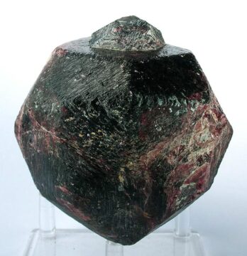 Garnets, however, are the true fruit of the underworld. They occur in a variety of colors, not just red, and all of them have colorful properties and histories. Calcium-aluminum garnet is called grossular, from the Latin name for gooseberry, a reference to its translucent pink to pale green hue. Calcium-chromium garnet is a rare grass-green variety named uvarovite, after Count Sergey Uvarov (1786-1855), who, when not busy with his duties as a statesman under Russian Emperor Nicholas I, spent his time collecting unusual minerals. These calcium-rich varieties of garnet are most commonly found in marbles and “skarns” — rocks formed by the metamorphism of limestones interbedded with shale and sandstone.