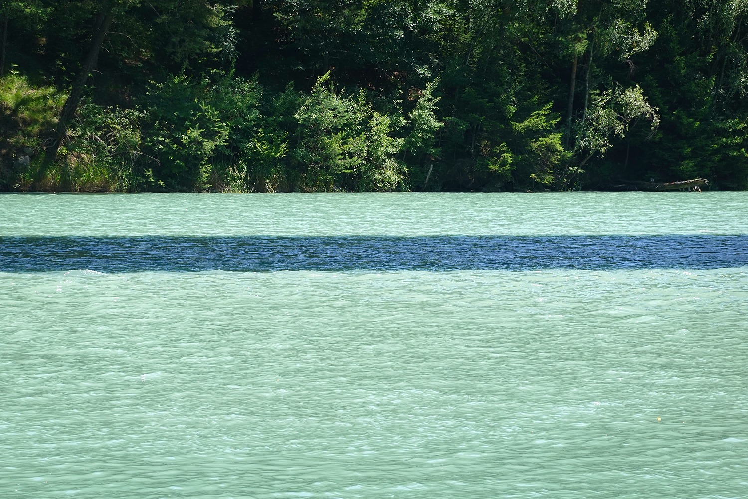 Shadow of the A22 Autobahn (a four lane highway) as it passes over the Stausee (a lake formed by a dam on the river Eisack) in Franzensfeste, South Tyrol, on the longest day of the year. I was taking a short pre-lunch walk and shot this photo at noon.