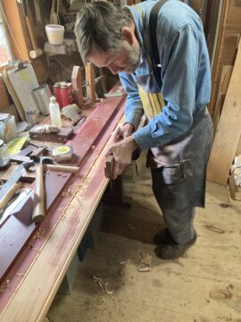 One such artifact: Don had always wanted a hand-operated boring machine to help him cut mortises in timbers. You drill large holes at the correct intervals for the pockets then use chisels to square up the corners. One day when he was out with his roommate at the time at a local antiques auction in the next town over, the roommate said, “They have one of those boring machines you’ve been looking for . . . And he’s bringing it up for bidding right now!” When the auctioneer called out for a bid, the roommate grabbed Don’s arm and lifted it into the air to initiate his involvement. “Sold!” the auctioneer said, as there were no others bidders.