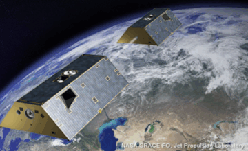The satellites travel at a fairly consistent speed, but due to gravitational differences based on variations in the Earth’s mass, the lead satellite slightly accelerates when it flies over a denser region (such as mountain ranges or regions with excess water mass), and the trailing satellite does so shortly thereafter. This causes the distance between them to increase slightly and then return to “normal”, depending on the gravitational pull below. Though the changes in distance between the two satellites is minuscule (mere microns), scientist can infer a lot about ground water from the relationship between the two satellites.