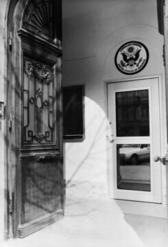 Heman Chong’s photograph of the door would become the first in his ongoing series documenting the back entrances of embassies and consulates—over three hundred of them since that first encounter in 2018.