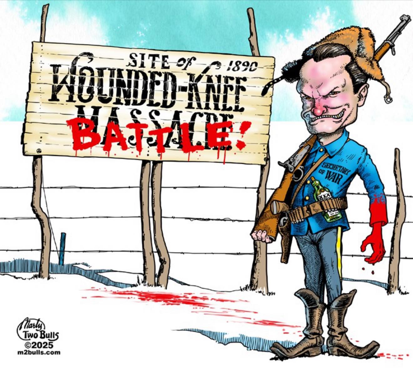The Oglala Sioux Tribe issued a statement calling Hsegeth’s actions and words “despicable, untruthful and insulting to the Great Sioux Nation. To call Wounded Knee a ‘battle’ dishonors the truth, desecrates the memory of our relatives,”