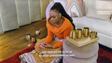 One of the women is confessing directly to the camera. She mentions that her fiance went out the night prior to meet up with a group of others. She calls these others “pod people.”