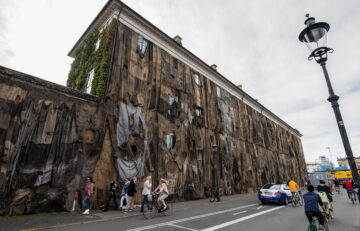 Born in Tamale and primarily raised in Accra, Mahama chose to base his art studio, Red Clay, in the provincial city rather than in the nation’s capital. Tamale, an important trading hub in northern Ghana, is known for its fugu clothing, a type of smock with roots in the Malian and Songhai empires. Over the centuries, Muslim traders built mosques and schools in sedate Tamale, which was more inland and distant from the direct links of the transatlantic slave and colonial trade. By contrast, Accra, the nation’s capital, with its Parliamentary Building and Black Star Square, is enlivened by streams of mellow banter and commerce. The city’s nocturnal activity creates an electric pulse. Pentecostal revival meeting lights and condominium-sale advertisements illuminate the city, leaving a ruddy glow along the highway. Although both Accra and Tamale have influenced Mahama’s work insofar as he draws from the capital’s marketplace and the provincial city’s scrap metal, his talent emerged against the broader backdrop of the postindependence promise of industrialization and its failure to deliver prosperity to most Ghanaians. Mahama’s installations, which say something about societal deterioration, also dramatize the country’s inability to sustain robust funding in the arts or technology in its postindependence years.