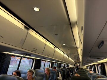Passengers then schlep to line up at the one escalator leading down to the tracks. This chokepoint is entirely of Amtrak’s choosing; nothing about the technology itself necessitates it. Airplanes have a single point of entry; lining up to board is inevitable. Trains obviate the need for this, but on the Acela you have to line up anyway. Before you’ve even boarded the train, Amtrak has already nullified one of its best advantages.