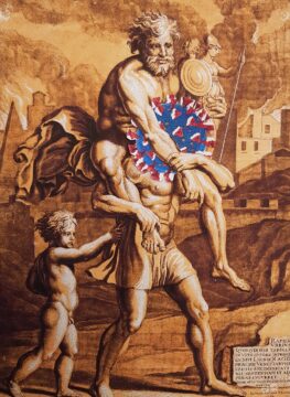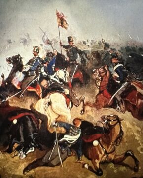 The next December 31, therefore, in 2020, and in each of the four years following that fateful twelvemonth, I resorted to samizdat, “publishing” my annual toasts here, on 3 Quarks Daily. Their themes have been increasingly expansive, their allegories farther-reaching: My 2020 retrospective recast the progress of COVID-19 as a flight from burning Troy; in 2021 I drew the development of a vaccination against the coronavirus in terms borrowed from the creation myth; in 2022 I decried the depredations of a range of dictators as an emanation of monotheism; in 2023 I figured the continuing willingness of “leaders” to send “their people” into battle as a version of the Binding of Isaac; and in 2024 I compared the contemporary round of saber-rattling and actual warmongering by lone, protectively isolated demagogues to the behavior of monarchs during the 19th-century Battle of Solferino, the last such European conflict in which the heads of state of the powers confronting one another led their troops personally onto the field of war.