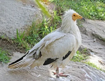 Scrappers, like the Egyptian vultures (Neophron percnopterus), are smaller. Their slender beaks are unsuited for tearing hide but allow precise foraging of tissues, skin fragments, or scraps left at the edge of a carcass. They often hover carefully among larger scavengers or near human activity, picking at remains that others overlook. The Egyptian vulture is one of the few birds known to use tools: Because their beak is too small to crack an ostrich egg, they resort to dropping stones onto the eggs to break them open.