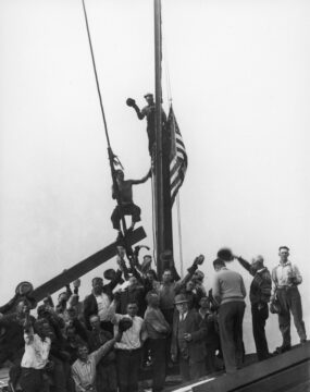 On September 26, 1932, the men topped out the RCA Building, as a lone ironworker on a single beam with an American flag attached reached for infinity. On October 2, “Lunch on a Beam” was first published in The New York Herald, its smiling subjects launched into an anonymous but eternal fame.