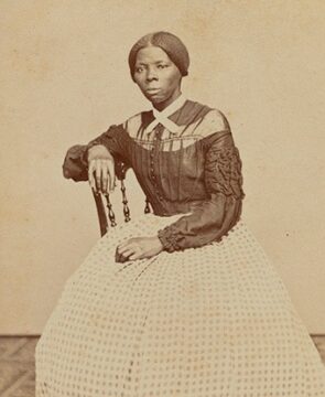 Born into slavery on Maryland’s Eastern Shore in 1822, Tubman was named Araminta by her enslaved parents, Ben and Harriet (Rit) Ross. Nearly killed at the age of 13 by a blow to her head, “Minty” recovered and grew strong and determined to be free. Changing her name to Harriet upon her marriage to freeman John Tubman in 1844, she escaped five years later when her enslaver died and she was to be sold. One hundred dollars was offered for her capture. Vowing to return to bring her family and friends to freedom, she spent the next ten years making about 13 trips into Maryland to rescue them. She also gave instructions to about 70 more who found their way to freedom independently.