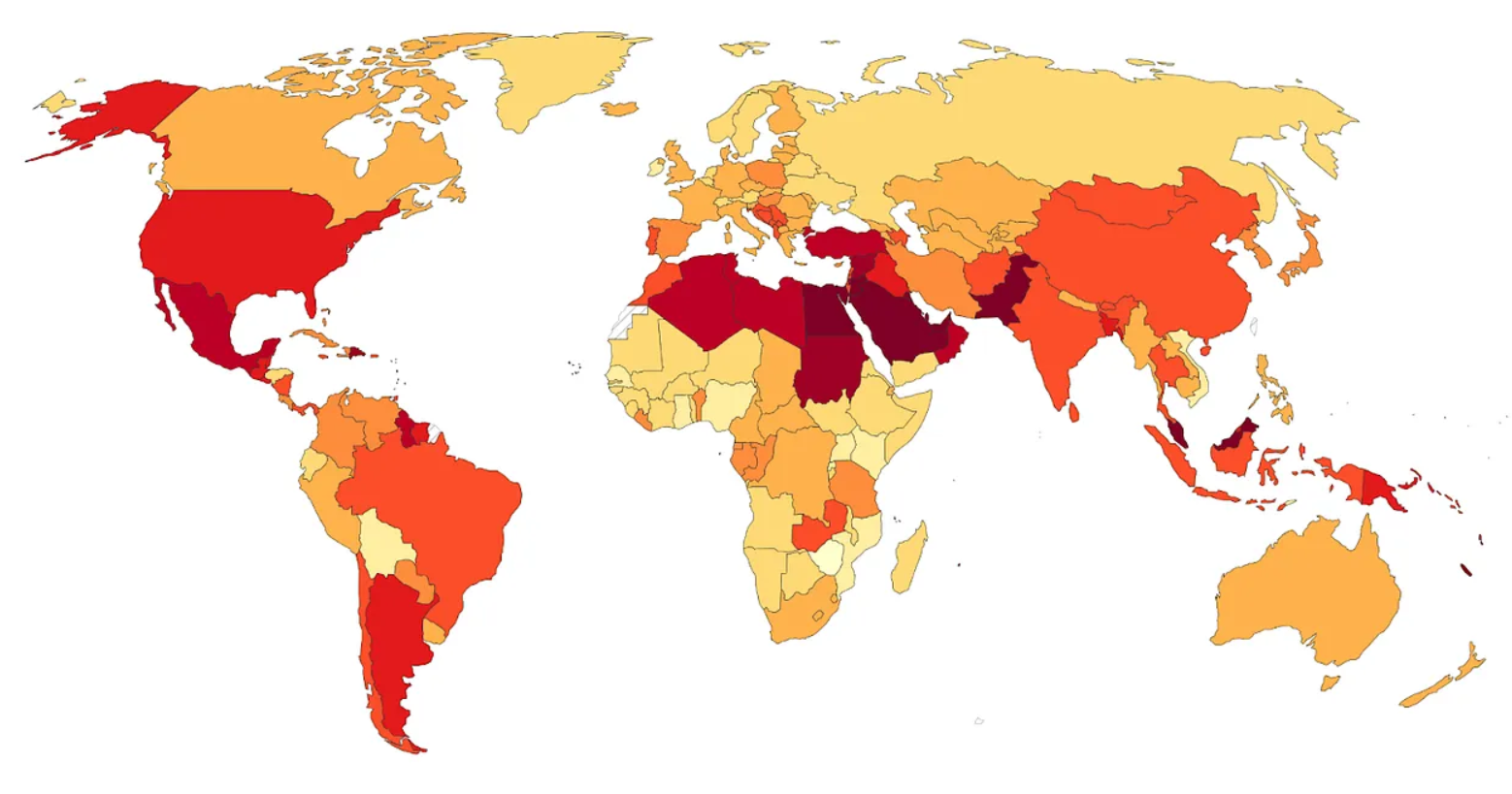 Take a look at the map below, which plots the prevalence of diabetes among 20 to 79-year-olds.