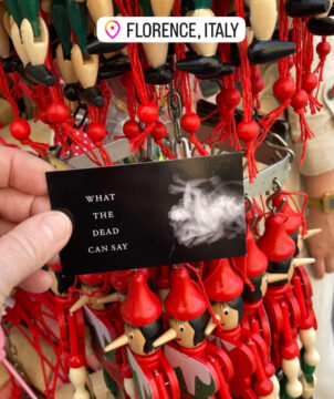 Finally, I printed little cards made up with the novel’s cover art, title, and URL for the digital version. Friends and admirers of What the Dead Can Say have taken these cards with them when they travel, and place them in unusual locations for potential readers to discover: the Freud Museum in London, the Coliseum in Rome, the Forest Monkey Sanctuary in Bali, the Graz Art Museum in Austria, St. Anthony’s Basilica in Padua, and an abandoned British telephone booth converted into a Little Free Library in Oxford, among many other corners of the world (examples can be found on Instagram: @jennyandherghosts).