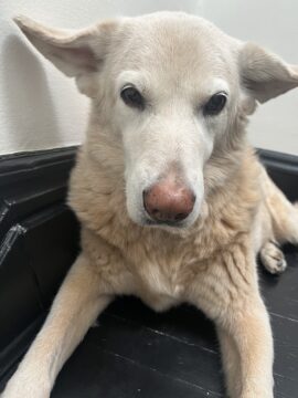 She was large, difficult, beautiful, and misleadingly friendly-looking. After six months as a Mississippi stray and fourteen years with us, her penultimate emergency vet visit left her imprisoned in our living room where she was supposed to lie around, shitting, pissing, drinking and eating in the same tiny space until maybe, just maybe, her arthritic and neurologically damaged limbs gained strength. Dog-aging speeds towards the middle of their lives and just gets faster. From a slight limp, to a major one, to barely being able to rise, to being unable to stand at all.
