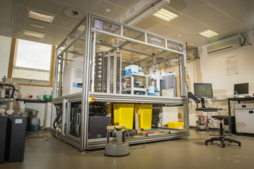 The robotic platform at the Chalmers University of Technology in Gothenburg, Sweden, is the brainchild of autonomous-lab pioneer Ross King. It is powered by artificial intelligence, self-driving and “fairly quiet”, King says. But it’s also fast. Working at full speed, Eve’s robotic arm can move a few metres per second, with a positional accuracy of a fraction of a millimetre. The team usually runs Eve slower than that — otherwise, King says, “it’s too scary”.
