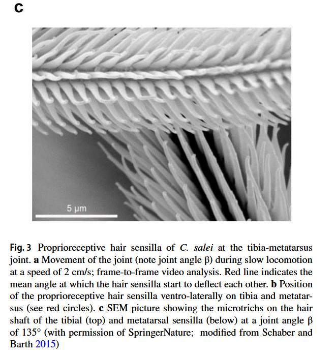 The web transmits and amplifies all signals generated, while the spider “listens” with its legs, reconstructing a three-dimensional map of tension and displacement. It senses these displacements using slit sensilla, specialized strain sensors located at the joints of its eight legs, capable of detecting movements as small as 0.1 μm.