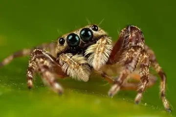 Jumping spider vision is among the most studied and here is what we know so far. Of their eight eyes, six secondary eyes are arranged around the head, together covering nearly 360 degrees. These monochromatic eyes are specialized for motion detection, guiding body turns and aligning the principal eyes with identified targets.