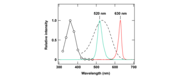 In the experiment, targets were therefore illuminated with red light whose intensity was increased about tenfold, so that the photoreceptors were activated as strongly as under green illumination. Brightness was thus matched at the receptor level. Because red light has a longer wavelength, however, the same amount of retinal defocus corresponds to a different object distance (Figure 8)