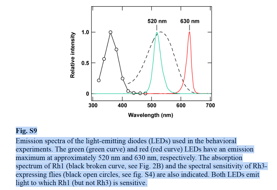 This mechanism was tested directly by exploiting chromatic aberration. Although the spider’s principal photoreceptors are tuned to green light, they retain weak sensitivity to longer wavelengths. As shown in Figure 7, the green-sensitive receptor responds to red light at roughly one-tenth the strength of green.