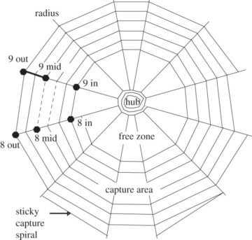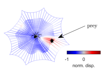 This may seem complex to explain or model, but it is directly integrated as sensation for the spider and elicits almost instantaneous responses when a fly crashes into the web (video link). If the spider is waiting elsewhere, it must first return to the hub to accurately pinpoint the prey’s position.