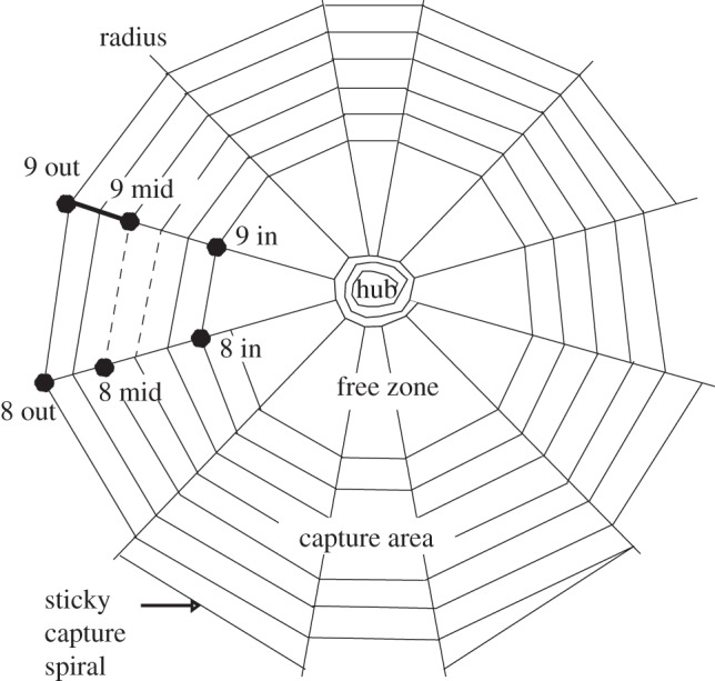 This web already provides a rich perceptual space one that supports surprisingly complex behavior. During spinning, spiders adjust silk properties in different parts of the web and the geometry of the web itself is tuned to maximize information transfer to the central hub, where the spider typically waits. It does not wait passively but can actively probe the web.