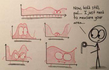 If you really remember your calculus, you’ll remember the early days of integral calc where you are asked to do calculations using Riemann sums (or, as my students call it, the Hard Way). This is the laborious method where you fill a region with little rectangles, add up their areas, and see what happens as the number of rectangles becomes arbitrarily large. If this rings a bell, then you may recognize what Newton sketched in his Waste Book nearly 400 years ago: