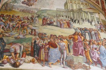 The first artist employed to decorate its walls was Fra Angelico. “Famous above all Italian painters,” stated the contract he signed around 1447. Unfortunately, so beloved was this painter by Pope Nicolas V, that he was called back to Rome after completing only two paintings on the vault: