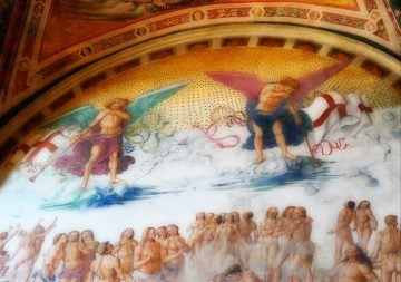 Though unable to get any closer than where I was standing, feet firmly on the ground, still I could understand what she meant. Angelico’s paintings exude a peaceful tranquility in what is an otherwise pretty disturbing space. With Christ depicted as Judge in the Byzantine fashion, he is seated on a cloud and crowned with a nimbus halo.