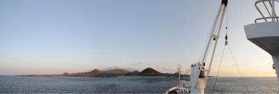 Ascension Island. Hell with the fire put out. Volcanic, 100 kilometers west of the Mid-Atlantic Ridge, the above-water tip of a 3,200 meter high, 60 kilometer wide volcano. Most recent lava flows thought to have been in the last 1,000 years but none since at least 1501. Some eight degrees south of the equator.